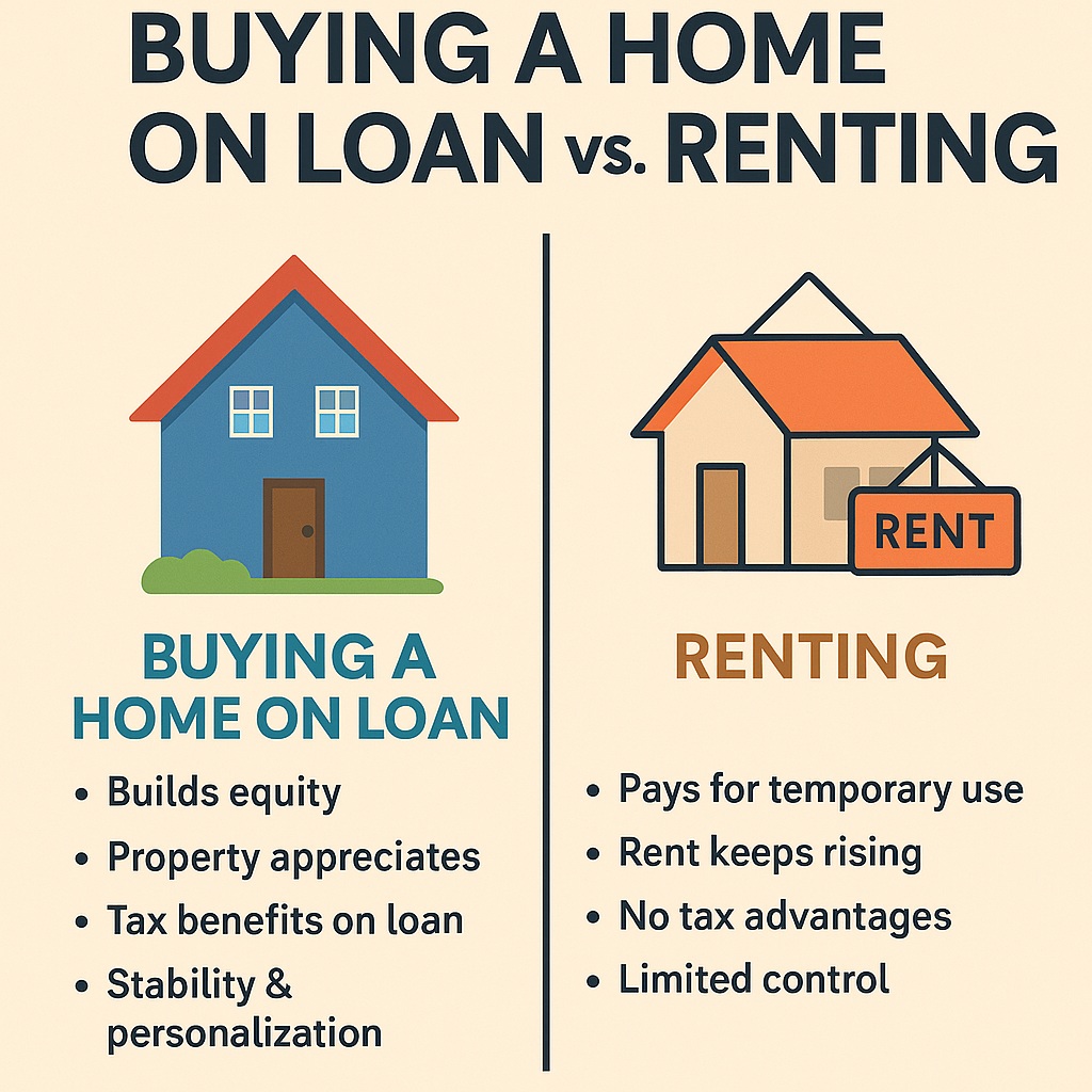 Should you buy a home with a loan or continue renting? This blog explores the financial and emotional reasons why buying may be a better long-term strategy — including tax benefits, wealth creation, and stability.